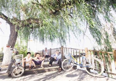 近日,滕州市荆河岸畔绿树成荫,许多市民在树下品味着夏日的休闲时光。去年以来,滕州致力于打造景观城市,实施包括解放桥匝道裸露土地绿化工程在内的一系列绿化工程,新增绿化面积100多万平方米,赢得了广大市民的交口称赞。 (特约记者 侯志龙 王辉 摄)