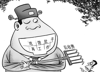 李军 8月31日《中国青年报》报道,因为媒体暗访揭露,某地质监局局长被推上了风口浪尖。这个质监局涉嫌重复检测,还要以“年票”的方式收取“检测费”。当记者追问乱收费的理由,局长说:“肚子不搞饱,怎么去工作,所以我第一必须考虑生存问题。” (9月1日《扬子晚报》) 监测收费乱糟糟, 扔出怪论来撑腰。 工作如何暂不论, 肚子首先要搞饱。 号称生存最重要, 法规纪律脑后抛? 局长做成这等样, 让位下岗当趁早。 |