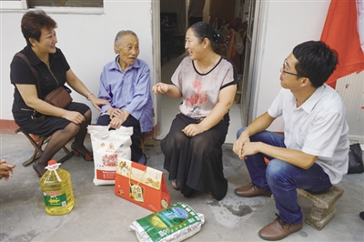 8月30日上午,滕州市“善国爱心公益”志愿者来到滕州市董村敬老院,看望了生活在这里的老人,给他们送去了过节用的米、面、油、月饼等。志愿者们还为老人打扫了房间卫生。 (特约记者 侯志龙 郭潇繁 摄)