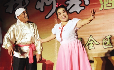 9月7日晚,演员们在表演柳琴戏《寻亲》。当晚,台儿庄区华阳社区君仁艺术团“庆中秋”文艺演出在府前广场举行。草根明星们表演了歌曲、豫剧、柳琴戏和快板书等,与市民共过中秋佳节。