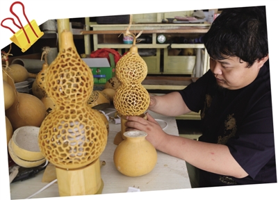 9月5日,家住枣庄市第十六中学教师宿舍的80后小伙王先生,创新制作的葫芦台灯得到许多市民的喜爱。制作一个精致台灯需要12个小时的雕刻,时间限制了数量,所以精美的葫芦台灯十分珍贵。