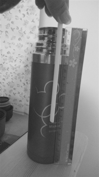 为了测试保温杯的实际容量,詹女士找了一根吸管和直尺。“我把酸奶的吸管放到杯子里,标注好实际的高度再拿出来和20cm的杯子对比,发现下面近9公分都是无法利用的。再加上这种杯子上面再盖上盖子,根本就倒不满水。我把灌满的保温杯里的水倒进矿泉水瓶里,根本就盖个底儿,估计也就200ml多一点儿。”詹女士说。