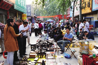 9月20日,枣庄大观园文化市场琳琅满目的珠宝、玉器、青铜器吸引了众多市民前来淘宝。当日,第56届秋季文化艺术博览会在大观园文化市场盛大开幕。来自安徽、河南、甘肃等省市的近百家经销商,带着种类繁多的“宝贝”云集大观园,现场销售异常火爆。