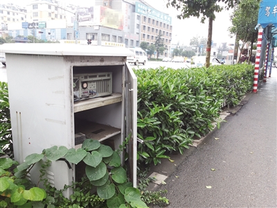 18日,记者在市中区光明路和龙庭路交界处附近的建设银行门前看到,路边一个内置仪器、线路的铁皮箱门户大开,里面的线缆仪器一览无余,很多市民既担心铁门会对交通安全带来隐患,又担心里面的物品被不法分子偷走。“哪个单位的,赶紧把门锁好了,出了事就晚了啊。”住在附近的市民蒋先生说。 (记者 邵士营 摄)