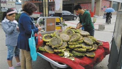 20日下午,记者在市中区文化路与龙头市场交界处看到,一位二十多岁的小伙子正在此处售卖三轮车里的鲜葵花籽。据了解,今年雨水较多,所以葵花籽的价格比往年稍贵一些,由于现在葵花籽的口感不错,引来不少市民购买。