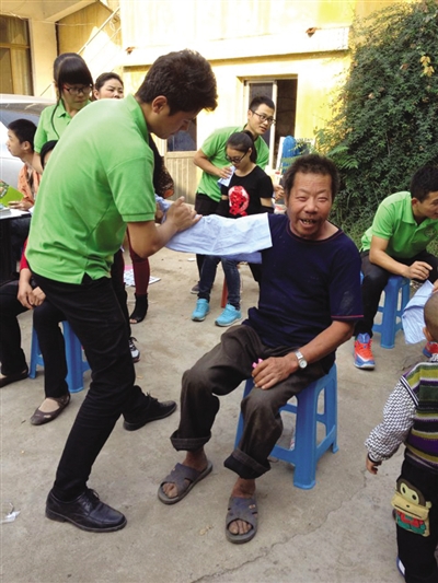 近日,数十位义工来到薛城区张岭村,为这里的数百位村民义务按摩、修剪头发,受到了村民的欢迎。