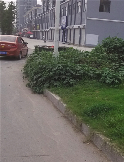 18日下午4时左右,记者来到了王先生所说的薛城区锦阳河路。通过观察记者发现,东西走向的锦阳河路与一条没有名字的南北走向小路交会,路口东北角的绿化带内植被茂盛,草丛边缘处更有大量葎草出现,无人管理的葎草一层叠一层,竟然形成了一道约1.8米高的绿色屏障,长度则囊括了整个路口的东北角。整个情况确实如王先生所说的那样,所有由东向西和由北向南行驶的司机和行人,来到这里都会有这么一个视觉盲区,看不到另一路口的情况。