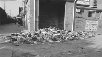 记者了解到,不仅该小区内垃圾中转站的垃圾没有被清理,就连紧靠小区西边的那条路上的垃圾回收处,也同样无人问津。“这里百十米的路段,一共有三四个垃圾点,最近这几天,这些小的垃圾点也堆积了很多垃圾,而且已经波及路面,成了‘拦路虎’。”家住铁路局宿舍的刘大爷无奈地说。记者看到,在铁路和铁路局宿舍之间的道路上,几处水泥砌成的垃圾存放点,生活垃圾已经外溢到路的中间,不论是骑电动车的市民还是步行经过的人,无不掩鼻绕行。随风摆动的方便袋和从垃圾袋里流出来的脏水,让这条道路脏乱不堪。一些经常从这里路过的人知道这里脏下次就绕路了。“很多经过此处的人都问为什么这么多垃圾没人打扫,上次一个熟人见到此情景还唠叨了几句,小区垃圾臭气熏天,都外溢到路上了,太不像话了。”家住铁路局宿舍的李女士说道。她还透露说,原先所说的垃圾斗坏了只是其中一个小小的原因,最主要的还是没有交卫生管理费,“路上的这些垃圾存放点可没有垃圾斗,不是同样也没人管没人问吗?”