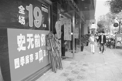 临近冬季,换季商战拉开序幕,聪明的商家拿出“甩卖”、“换季放血”、“抛货”等打折销售本领,以此来吸引消费者眼球。 (记者 孙明春 摄)