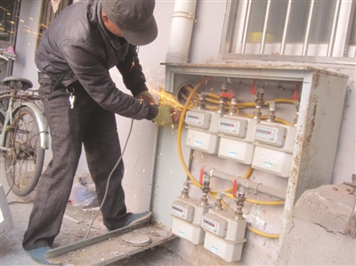 11月4日中午12点多,记者在文化四村看到,工人师傅们正在加班加点拆掉旧天然气表箱,更换新的表箱。“以前都是铁表箱易上锈、易坏,现在都换成了铝合金和塑料的,我们一边检查有没有漏气的,一边换新的表箱,文化四村换了300多个,老城区一共要换1300多个。”在现场一位工作人员说道。
