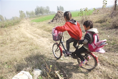 小程程就读的学校离家4里多路,每天不仅要自己骑车去上学,还得带着5岁多的妹妹去上学前班,瘦小的她每天都要用自行车带着妹妹来来回回好几趟。