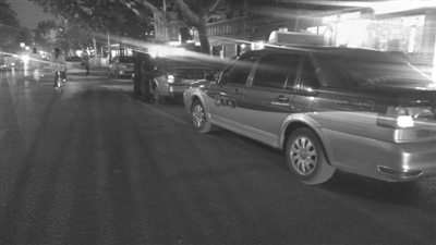 4日下午5点40分,在市中区三角花园汽车总站正对面,两辆出租车停靠在路边拉活儿。两位驾驶员站在车旁有说有笑,而两辆出租车占据了近乎整个非机动车道,让晚高峰时期本就拥堵的交通变得更加难行。旁边的一位行人告诉记者,此处晚间经常可见出租车拉活儿,给交通带来了较大的不便。 (记者 王龙飞 摄)