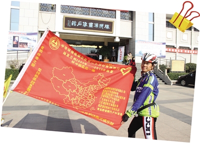 9年前,康逢云在温州卖拉面,突然有一次,他因身体不适,便去当地医院做了体检,结果被查出胃癌。“这个消息如晴天霹雳一般打击了我,那段时间我辞掉工作,整日消极。一个偶然机会看到有人骑行散心,于是我就去买了辆自行车。”康逢云告诉记者:“因为身体不适,我便想到通过骑行全国来调节身体,第二天便开始了全国之旅。骑行中,我发现这种运动方式真不错,既低碳环保还能锻炼身体,于是我便每到一个地方,都跟人讲解骑行的好处。”