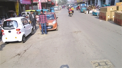 23日下午,记者赶到现场后,发现从步行街北首向南近300米的路段两旁,大约有30家售卖电动车或者电动汽车的店面。从现场估算,该路段的宽度约为20米,而电动车商家们为了将自己的产品更好的展示,纷纷将电动汽车摆在门外,将原本宽敞的马路挤“瘦”了一半,不仅如此,部分店铺门前除了占道摆放的电动车外,有些直接将电动汽车放在近乎路中间的位置进行维修,使得该路段几乎无法容纳两辆车并排通行。