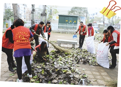 一场秋雨一场寒,23日,一场雨水过后,市中区龙头社区里树叶落满地。为了尽快清理雨后的树叶,24日一大早,二十多名义工拿着扫把、簸箕等工具,来到该社区打扫卫生。义工们不怕脏、不怕累,清理着每一处的卫生死角,把树叶杂物集中到一处进行处理。社区道路上的树叶被清理后,卫生环境面貌焕然一新。