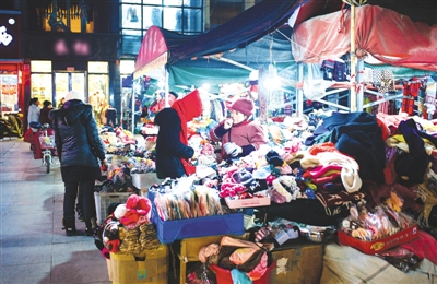 受较强冷空气影响,这两天我市气温骤降,低温跌至-5℃,最高气温仅3℃。天寒地冻,一些卖保暖用品商家的生意格外红火。昨晚,记者在吉品街后巷看到,寒冷的冬夜,一些露天商铺仍灯火通明,生意繁忙。