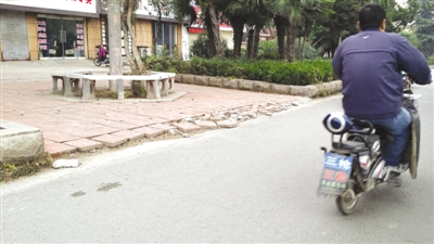 近日,在市立医院南门西侧不远处,一片地砖松动,部分地砖已经破碎。“夜晚,有行人从此经过,被绊倒过,希望相关部门赶紧来修修。”附近居民说。 (记者 李帅 摄)