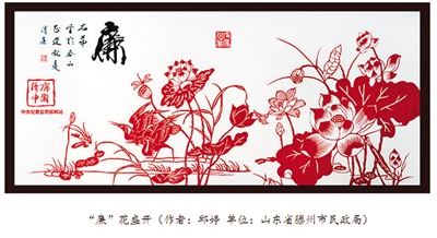 日前,中央纪委监察部网站启动首届“清廉中国”新闻摄影、公益广告、漫画征集活动。在网站展出的入选作品中,滕州市民政局工作人员邱婷创作的剪纸作品《廉》入选。