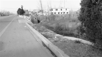 随后,记者沿着中兴大道在1路车侯桥站牌的北侧看到了这座大桥。记者看到该桥年代较为久远,大桥两侧的栏杆有些裂痕。在桥东侧,记者看到了孙先生所指的地方,正如孙先生所说的那样,这段空白的地方,栏杆没有设置到,也不像南侧有树木挡着,就这样光秃秃的,下面直接就是深沟了。记者在现场粗略的测量了一下,大概有二十米的距离处于真空地带。站在这真空地带之上,就能看到边上的深沟。