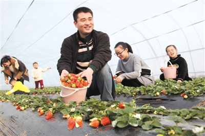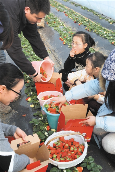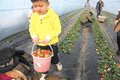 采摘游里最开心的是孩子们。有的说,我还以为草莓是长在树上的呢,有的说,没想到种草莓这么有讲究,有学问。草莓技术员的讲解,让城里的孩子们知道了什么是无公害,也更加亲近了大自然。