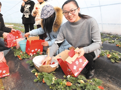 “哦,从来没吃过这么甜的草莓!”“原来草莓是长在地上的!”……1月25日,虽然寒风刺骨,但山亭区北庄镇铁山村一农户的草莓大棚里,呈现出春天的景象,前来采摘的城里人,脸上洋溢着快乐的笑容。看到这一幕,站在一旁的年轻人脸上露出了喜悦。