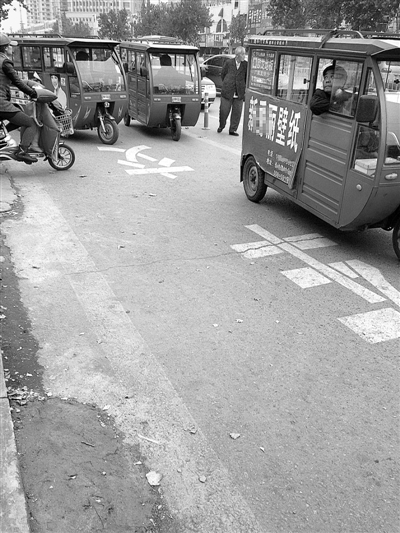 除了天气变暖以外,现在很多电摩生意火爆,这也是让出租车“难开”的原因。“我开车也有些年头了,最开始人力三轮抢生意,后来人力三轮渐渐绝迹以后,电摩又开始横行,前段时间就听说有些城市因为出租车司机赚不到钱而集体罢运。”同样一位有着多年驾龄的出租车司机黄师傅坦言:“在城区不少主干道,经常可以看到一些载人电摩,他们经常无视红绿灯,而且不论什么路口都敢停车。另外不少公交站牌附近,也有许多‘专业等车’的电摩司机,他们往往占着公交停靠点,见人就拉。种种陋习摆在眼前,但很多市民却依然选择电摩,原因就是便宜。听说最近要对市区的电摩进行整治,这也让我们出租车司机看到了希望,希望在整治之后,能让出租车的生意好起来。” (特约记者 金亮 文/图)