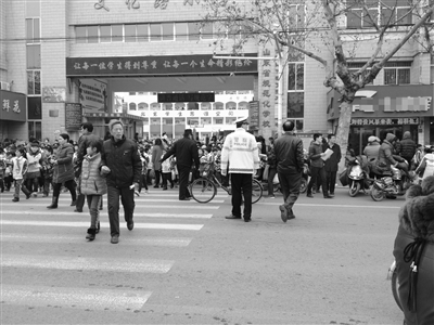 在十五中西校记者看到,交警提前到岗,有序地指挥着来往车辆,保证学生的安全以及道路的交通秩序。来往车辆在交警的指挥下,停车避让来往学生,道路交通畅通有序。一直到所有的学生入校,交警才从学校门口离开,回到原来的岗位上。