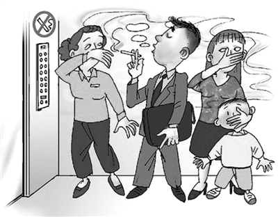 甄先生表示,由于电梯空间狭小,且相对封闭,一旦有人在电梯里抽烟,烟味往往要很长时间才能消除。“由于自己居住的小区属于高层住宅,每天都会乘坐电梯上下,在电梯内看到有人抽烟的情况很多,而且在电梯内经常看到有烟头,导致电梯内的烟味很难散去,希望物业部门能够在电梯内张贴‘禁止吸烟’的警告语,尽管起不到多大作用,但至少能对一些烟民起到警告作用。”