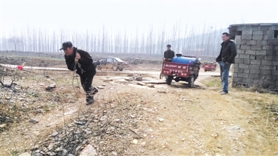 赶到西井时,正巧碰上有一村民骑着三轮车前去取水,车斗内横放一铁质汽油桶,旁边有一说带轮轴的东西。取水前,先用尼龙绳紧系在小桶上,然后侧面再系上一石块,好让桶能够侧倾装水。而后,该村民又拿起那个带轮轴的东西,向记者说道:“这个东西村里人都叫他滑轮,其实就是一小推车的轮轴和一自行车的前叉固定在一起,取水时把滑轮放在井口,用石头压住,然后利用滑轮的省力原理取水。”说罢,该村民用绳子控制桶在井里荡了荡,待盛满水后,将绳子放在滑轮上,而后用肩膀的力量将水桶提上来。接着,记者也依照该村民的模样试了几次,只觉肩膀被绳子勒得十分疼痛。