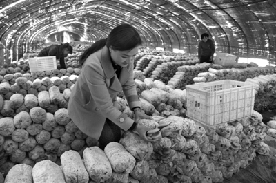 失业女工王鹏创业多年,如今在市中区西王庄乡杨楼村建立了占地面积150余亩的蘑菇种植基地,建有温室大棚26个,成为远近闻名的蘑菇种植“大王”。