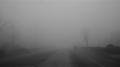 19日早上,枣曹公路被大雾“笼罩”公路,能见度只有三四米。市民开车时视野受到严重影响,道路交通安全存在较大隐患。 (记者 王萍 摄)