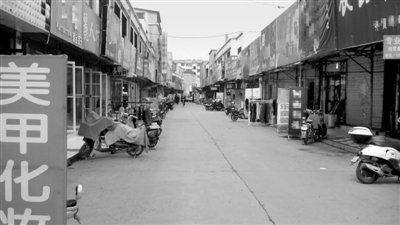走进商城,乍一看人来人往,似乎相当热闹,可仔细观察就会发现,来这条路上的人是不少,可是真正进店购物的人却屈指可数。多数人只是行色匆匆,甚至来不及多看周围小店一眼就骑着电动车飞驰而过。当记者走到专门卖布匹的小摊附近时,看到的就更是人烟稀少了,只有路边最前面一排搭的水泥板上摆有布匹衣料,表示有人在做生意,后边有三四长排摊位全部空着,仅有些杂物堆在上面,显得很是破败。“以前这些地方(指南边空着的三四排的摊位)全都是卖布的。”卖布料的张女士说,“但是后来都经营不下去了。”“是生意不行了吗?”“对啊,现在不少市民都去八大批发城、吉品街那边买东西了,所以肯定会影响这边的生意的。而且现在年轻人都买成品了,很少会有人再买布做衣服穿了。”张女士无奈地说道。