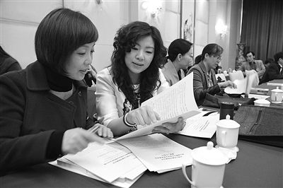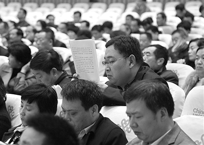 ⒉ 3月23日上午,市政协九届四次会议上,委员们在全神贯注地听取政协常委会工作报告。