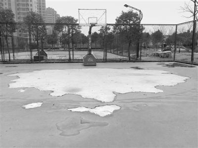 在这儿经常打球的人告诉记者,这些场地原来只有一小部分开裂,下雨使得场地长年累月的积水,然后又在太阳底下一晒,这么一来一去就造成了场地大面积开裂,再加上来这里的市民平时不注意对场地的保护,经常用鞋去磨坏掉的部分,久而久之形成了现在这个样子。