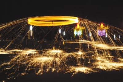 这就是山亭区非物质文化遗产名录中欧峪村的古老民间焰火——甩铁花。