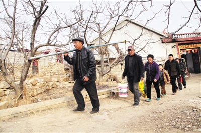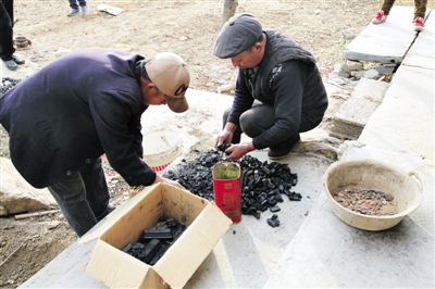 传说宋代时“甩铁花”已流传于欧峪村,距今已有千余年的历史了,是当地人喜闻乐见的民间传统活动。闫宗斌介绍,“甩铁花”在山亭地区是一种与众不同的“打花”表演,也叫做“甩灯”、“打铁花”。其中的讲究可不少,首先就要考虑到安全问题,得选一个宽敞的地方,最好离村庄远一些,周围不能有干草,但最好有一些大的山石,好让熔化的铁水溅起更大的火花。因此,他把此次的“甩铁花”地点选在了村子的后山坡,并在村子里物色了7位体格强壮的小伙子。
