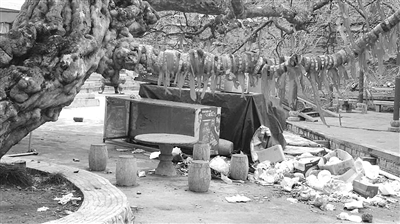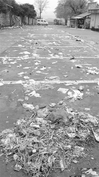 5日,冠世石榴园景区内举办的青檀寺庙会,吸引了大量慕名而来的游客。然而,游客离去后,却留下了遍地的垃圾。 (记者 王龙飞 摄)