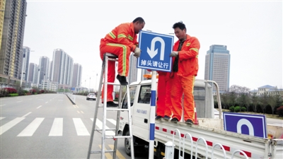 为进一步明确滕州市各交通要道的交通指示系统,最大限度发挥交通指示牌的指示作用,近日,滕州市交警大队交管科对该市部分路段的交通指示牌进行了更换。 (记者 姚付林 摄)