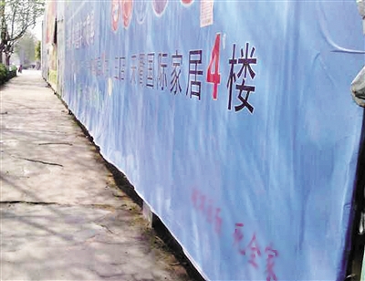 近日,在薛城区临山路,一幅广告牌的一角写有不雅诅咒,令过往市民为之侧目。 (记者 李帅 摄)