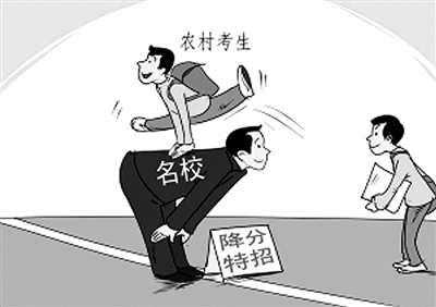 4月15日,清华大学、北京大学、北京师范大学和北京航空航天大学,公布了各自针对农村考生的招生计划。清华、北大和北师大要求考生自荐报名,北航规定须由中学推荐。四校给出的录取优惠,从降30分到降至一本线录取不等。(4月16日《法制晚报》)