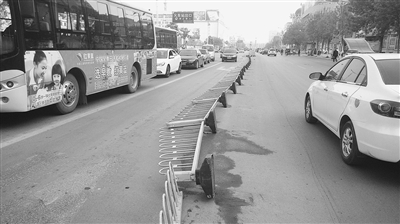 在大同路事故现场记者看到,三十多米长的护栏向西倾斜“躺”在地上,护栏底座固定护栏的墩子被撞变形,有几个墩子下面起到固定作用的铁钉被拔出来。据市民介绍,导致护栏歪倒的罪魁祸首是违规行驶的车辆,因夜间车少人少,有些机动车行驶速度过快,往往会导致车辆失控而撞倒护栏。“经常会有车辆把护栏撞倒,而根本原因还是车速太快。”某商场员工经过此处时说道。