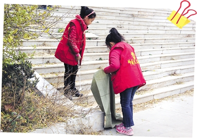近日,在峄城区坛山公园内,小学生们在老师和家长的带领下捡拾垃圾。这是榴娃艺术舞蹈学校及峄城义工协会组织的活动,让孩子们从小树立环保意识,用实际行动来爱护地球。 (记者 张莉萍 摄)