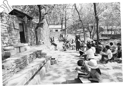 4月25日,学生们在石板房写生创作。山亭区石板房部落风景区由于地理风貌奇特,吸引了不少市民前来采风创作。