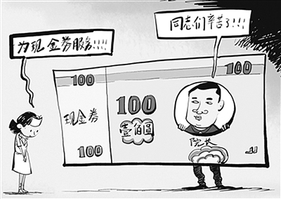 郑州市某医院印制了一种“现金券”,与百元钞票十分相似,右侧领袖头像则变成了该院李国永院长的头像。据悉,该仿制的“百元钞票”是他们院长自己发明的,凡是在该院住院的患者能使用1张现金券抵现金使用。