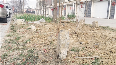 “我们小区一大怪,别人都植树,我们种石块。”近日,市中区锦龙国际花园小区的一位居民调侃道。原来,该小区部分绿化带周围都围了一圈石块,从远处看好像是种了一圈石块一样。