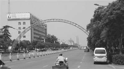 晚报讯 (记者 王龙飞 摄影报道)4月24日,本报以《材料脱落 电线裸露 彩虹门存安全隐患》为题,报道了市中区光明路某燃气公司附近一处彩虹门,因年久失修导致其附着材料掉落的问题。近日,当记者再次途经此处时,发现彩虹门上的附着物都已清理干净,只剩下门本身的钢结构。据市政管理处设施管理所的一负责人说,目前该彩虹门的新规划工作已经开始运作。