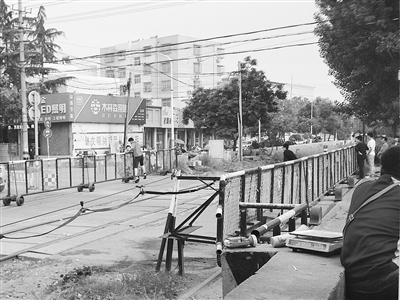 晚报讯 (记者 杨晓斐 摄影报道)5月18日下午,在市中区龙头路铁道口处,火车马上要经过,铁路护栏已经将龙头路封闭,大部分车辆和行人都自觉等在护栏两侧,可两名年轻男子却不顾危险,翻越护栏。这两名年轻男子一个穿红色上衣,一个穿黑色上衣,由于不愿花时间等火车经过,便在道路封闭后,一前一后翻越护栏,横穿过铁路,让护栏两侧等待的市民不禁为他们捏了一把汗。