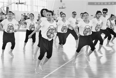 24日,市中区第三届“舞动校园”广场舞大赛,在枣庄市第十六中学举行,来自该区的22支代表队参加了比赛。 (记者 孙明春 摄)