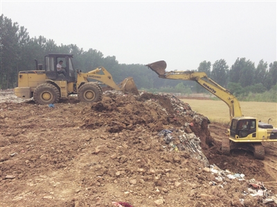 18日,本报曾以《森林公园旁有个垃圾填埋场》为题,报道了薛城区蟠龙河湿地公园内,一露天垃圾填埋场威胁蟠龙河湿地水源安全的问题,得到了薛城区委区政府以及环卫部门的高度重视。26日中午,记者再次赶到现场时,看到垃圾场内有数台作业车辆正在对垃圾场进行填埋。现场负责人告诉记者,填埋工作从20日开始已经进行了6天,垃圾场如今已经基本填埋完毕。而随后他还表示,今后还保持每2到3天对垃圾场进行填埋的频率。 (记者 王龙飞 苏羽 摄)