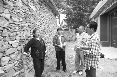 初夏的崔虎峪村满眼绿色,清幽静谧,偶有鸟鸣和着鸡犬声在山谷间回荡,愈加显得小山村如世外桃源般美丽。村里的民房依山而建,北高南低,虽没有刻意的规划,却在错落之中透着规整。不少村民的家门前垒有石台阶,光滑的石板写满了沧桑。村头有一座几年前在原址上翻建的三清观,但大门紧锁,我们没能进到里面去。据了解,当年印钞厂刚搬到崔虎峪村时,就设在这座三清观内。